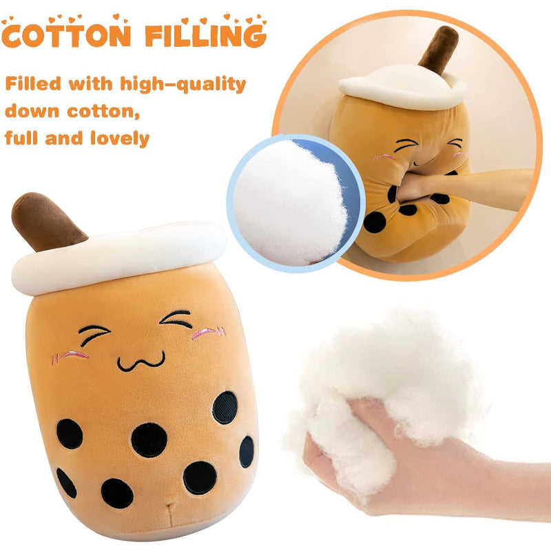 ?Meet this joyful Bubble Tea Plushie Pillow, the perfect companion to sweeten your day. Its rich, caramel-colored base is dotted with plush "pearls," and it's topped with a soft, white cream cap and a brown plush straw, creating a bubble tea look. Crafted from soft material, it's designed for both playtime!