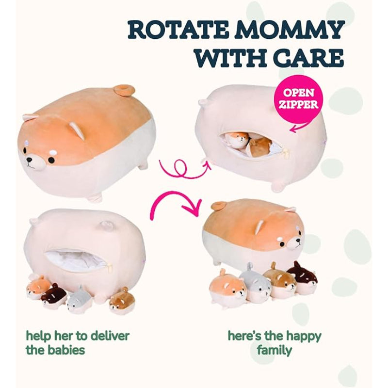 The Shiba Inu Stuffed Mommy Toy with 4 Puppies is a plush set that captures the heartwarming bond between a mother and her babies. This set is perfect for children who like animals and for collectors of cute plushies.
