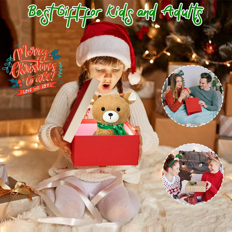 ?Get ready to embrace the holiday spirit with our Christmas Reindeer Plush Pillow! This charming plush toy is designed to look like a friendly reindeer, complete with a soft brown coat, white facial features, and an adorable green scarf adorned with snowflake patterns. Perfect for holiday gifting or decorating!