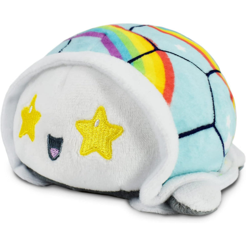 Experience the enchanting transition from day to night with the Reversible Designed Turtle Plush Toy. This adorable plush toy features a unique reversible shell that allows you to flip between two different colors. One side displays a deep, contemplative frown set against a starry night shell, while a simple flip reveals a different expression on a soft grey canvas. This plush is perfect for sharing your perspective.Product Features:- Reversible Magic: Enjoy two plush toys in one with a unique shell design that flips inside out to reveal a new stand and color theme.