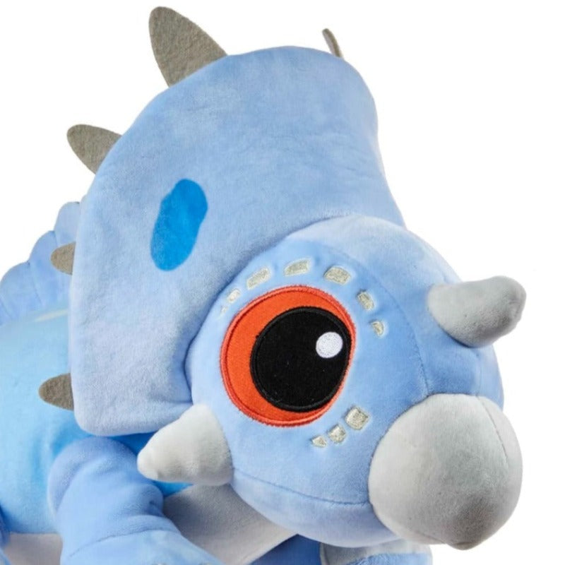 Let your child sleep easy with the Spinoceratops Dinosaur Plush Toy by their side, ready to embark on exciting adventures in dreamland.?This plush companion boasts a floppy bottom and emits a powerful roaring sound with a gentle squeeze to its right, making it the ideal buddy for both naptime adventures.?The toy is not just a playmate; it doubles as the perfect inspiration for a nighttime snuggle companion.