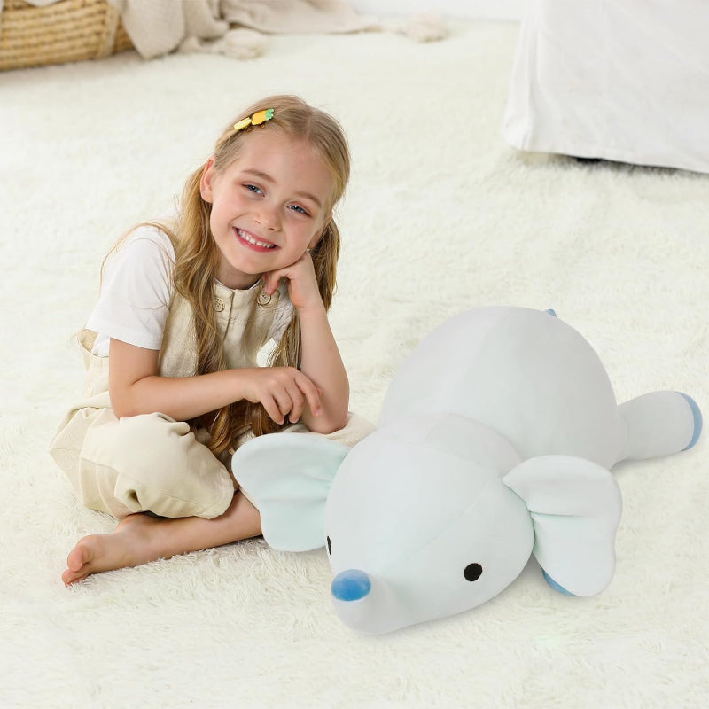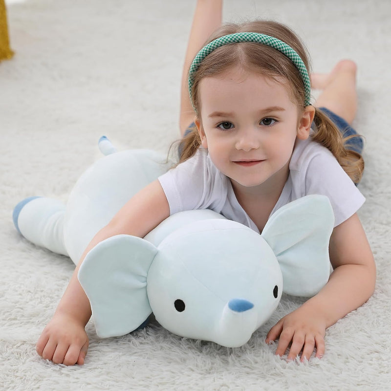 Huggable Elephant Design: This plush pillow toy features a charming elephant design that captures everyone's attention. Its soft and cuddly texture makes it the ideal snuggle buddy.