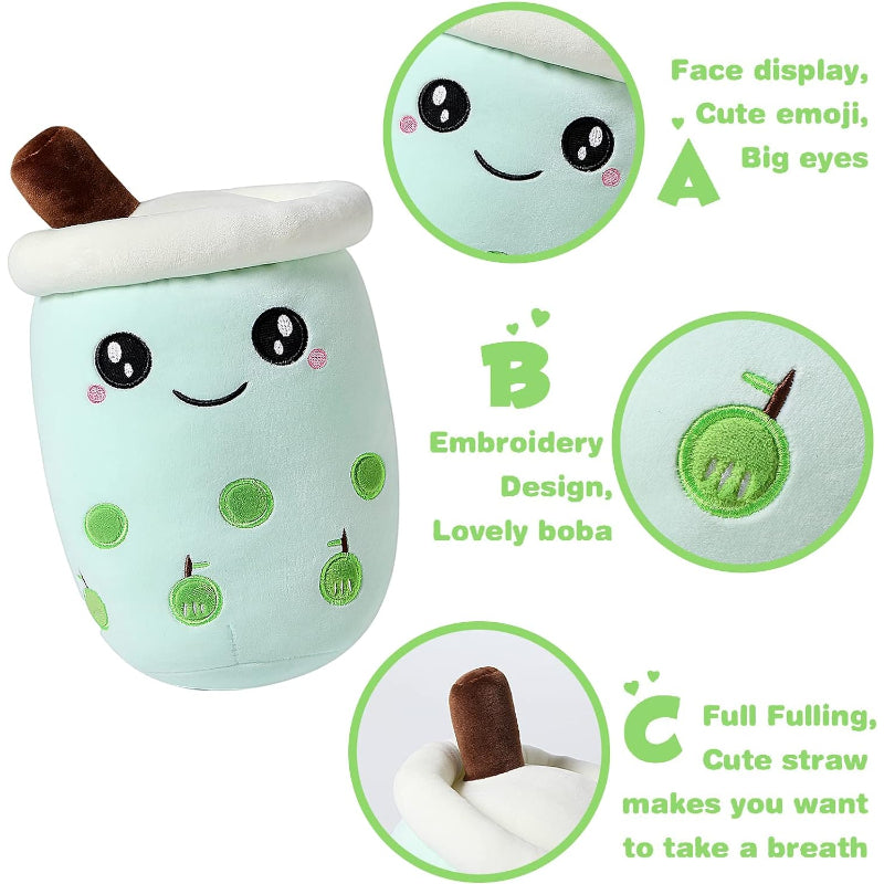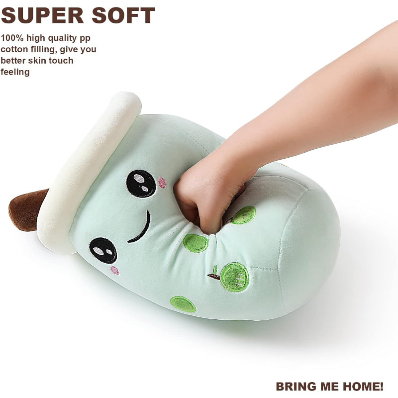 ?Quench your thirst for cuteness with this Bubble Tea Plushie Cartoon Pillow! Adorned with a cheerful?profile and dotted with adorable bubble "pearls," this pillow brings the popular beverage to life. Perfect for bubble tea aficionados and plush?enthusiasts alike, this pillow is not only a cuddly buddy but also a playful addition to any space!