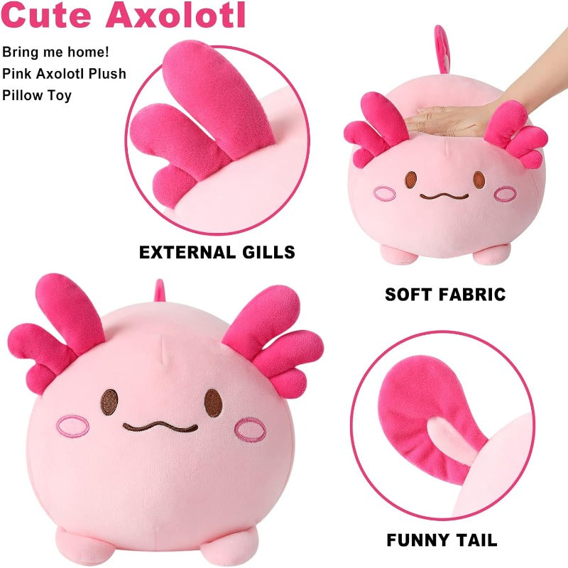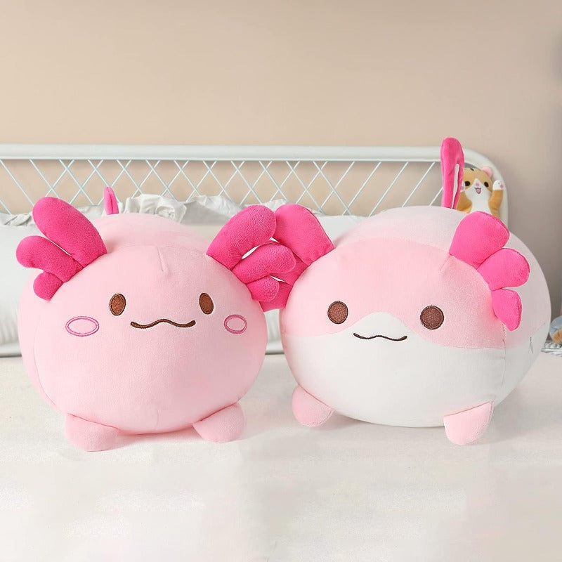 Uplift in the charming comfort of our Axolotl Plush Pillow, a perfect blend of comfort and coziness. This soft axolotl stuffed animal is designed to bring a touch of whimsy and warmth to any room. It's not just a plush toy, but a cuddly companion that promises to be there during your relaxing moments and sweet dreams.