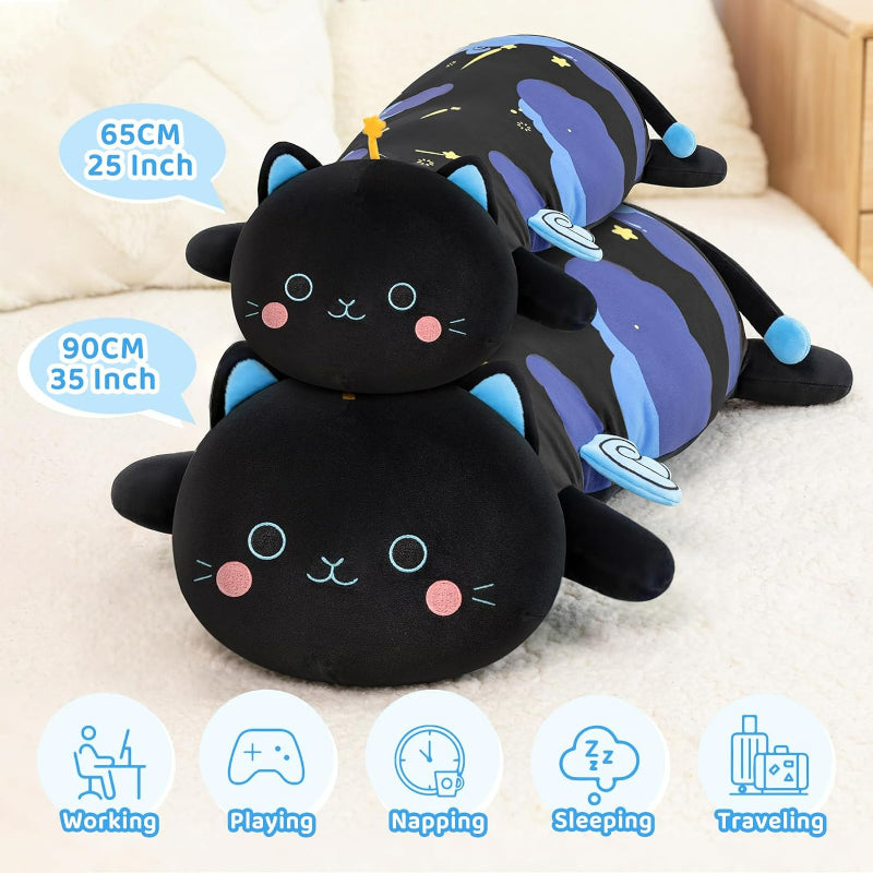 Explore the heavens with our Cat Stuffed Plush Toy. This amusing set includes two cosmic-themed cat plush toys, each with a unique celestial design. The deep black plush fabric simulates the vastness of space, dotted with stars and planets to ignite imaginations. With their bright embroidered features, soft blue accents, and one even sporting a tiny crown, these kittens are ready to embark on interstellar adventures or snuggle up for a dreamy nap.