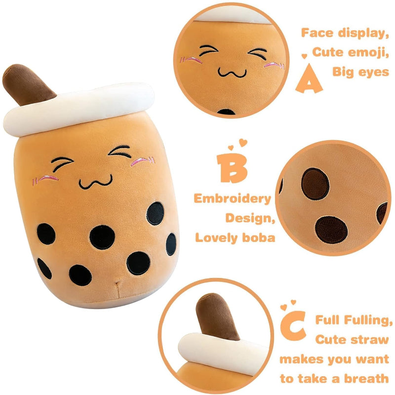 Charming Bubble Tea Cup Design: This plush pillow has the adorable characteristics of a bubble tea cup, including a straw and embroidered tapioca bubbles that create a realistic yet whimsical look.
