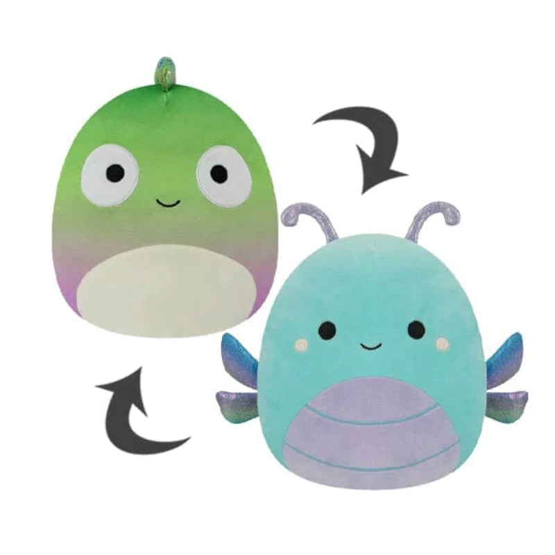 Introducing?Dragonfly And Chameleon Reversible Plush Toy the reversible plush toy that doubles the fun and imagination! This innovative toy transforms from a serene green chameleon with wide-eyed wonder to a whimsical blue dragonfly with a smile that lights up the room. Perfect for interactive play and storytelling.